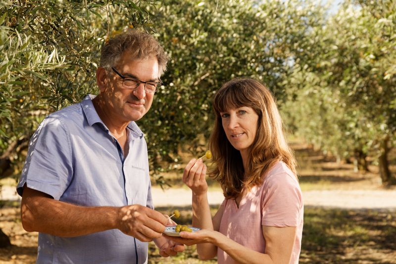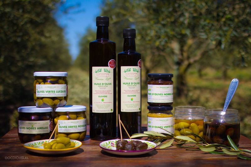 Françoise et Arnaud Lupia vous proposent plusieurs variétés d'huile d'olive avec entre autre la variété Olivière qui a été plusieurs fois primée lors de concours régionaux. Vous pourrez également profiter des olives du domaine, notamment la fameuse AOP Lucques du Languedoc , la croquante Picholine ou encore la surprenante Amellau. Retrouvez aussi les délicieuses tapenades et les nouveaux tartinables aux divers parfums : citron-romarin, tomate-piment d'Espelette, amande-curry ou façon pistou. Un véritable régal pour les papilles ! Tartinables dont les recettes ont été réalisées en collaboration avec le chef Yann du restaurant le Sépia. Pour les amateurs de gourmandises sucrées, vous trouverez également leur jus de raisin issu du Domaine et des confitures de coing et de pastèque.